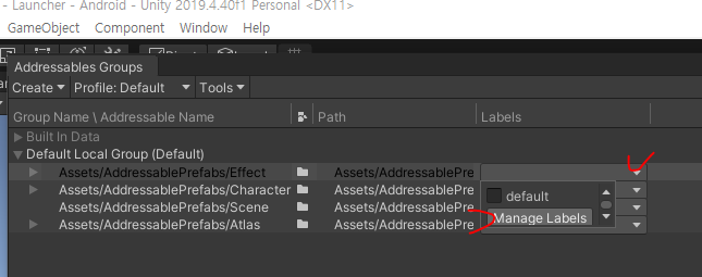 패키지 매니저로 들어가서 어드레서블을 검색해서 인스톨...Asset Managment - Addressables - Groups 으로 이동Create 버튼 클릭으로 초기 세팅Addressables Groups 라는 창이 열리고 Assets 에는 AddressableAssetData 라는 폴더가 생기고 저는 AddressablePrefabs 라는 폴더를 만들었습니다 이 안에 패키징 할 프리팹을 넣을 예정 입니다대략 씬 캐릭터 아틀라스 등등 테스트할 것들을 몰아넣은 씬을 만들고 폴더도 나눠서 만듭니다폴더 4개를 선택하고 Addressable 체크항목을 체크 하면 어드레서블 시스템에 포함 됩니다Addressables Groups 를 열어보면 포함한 폴더들이 다 들어온 것을 볼 수 있습니다
