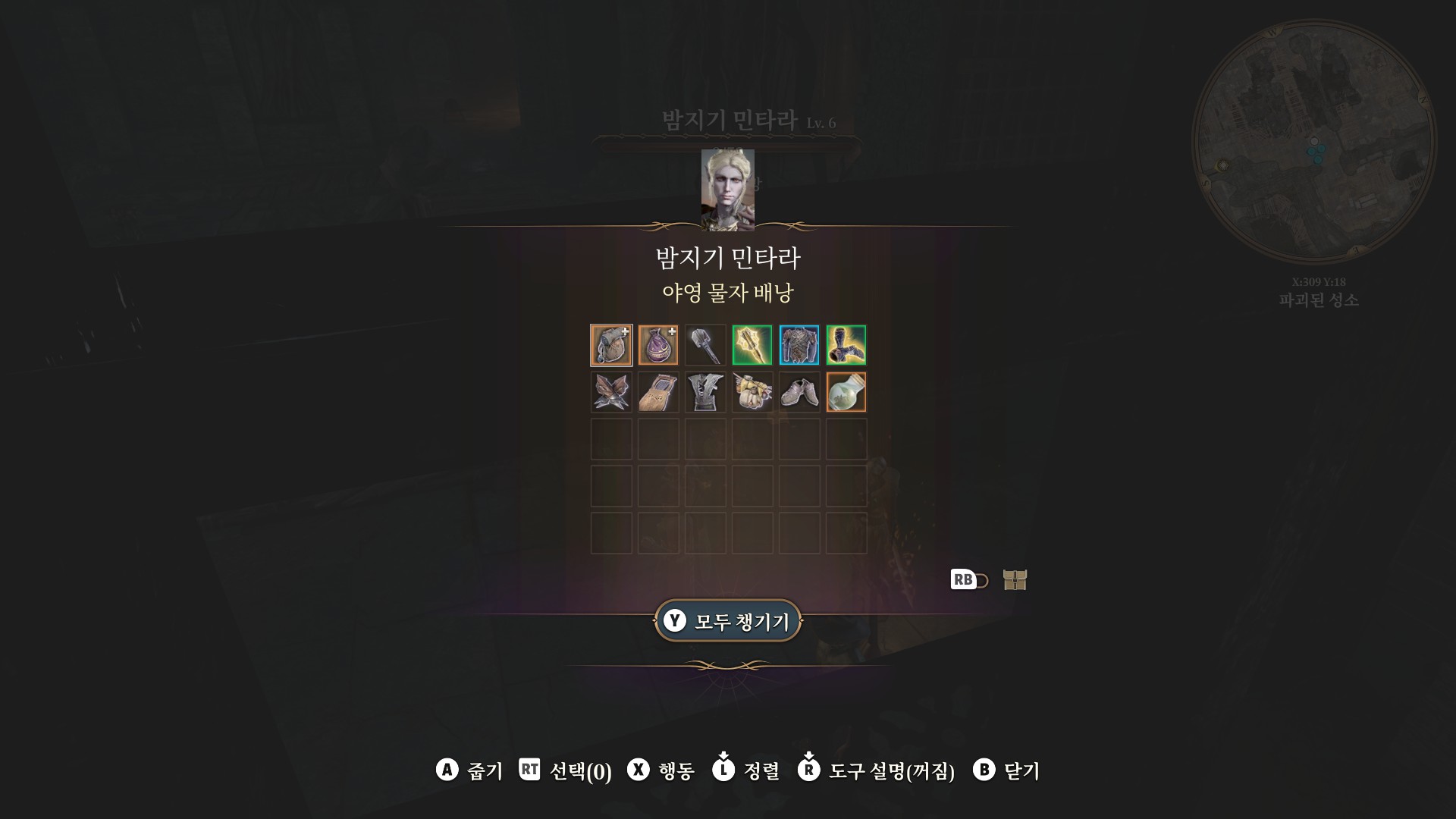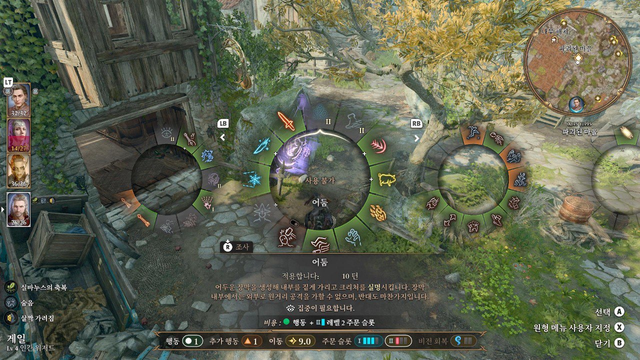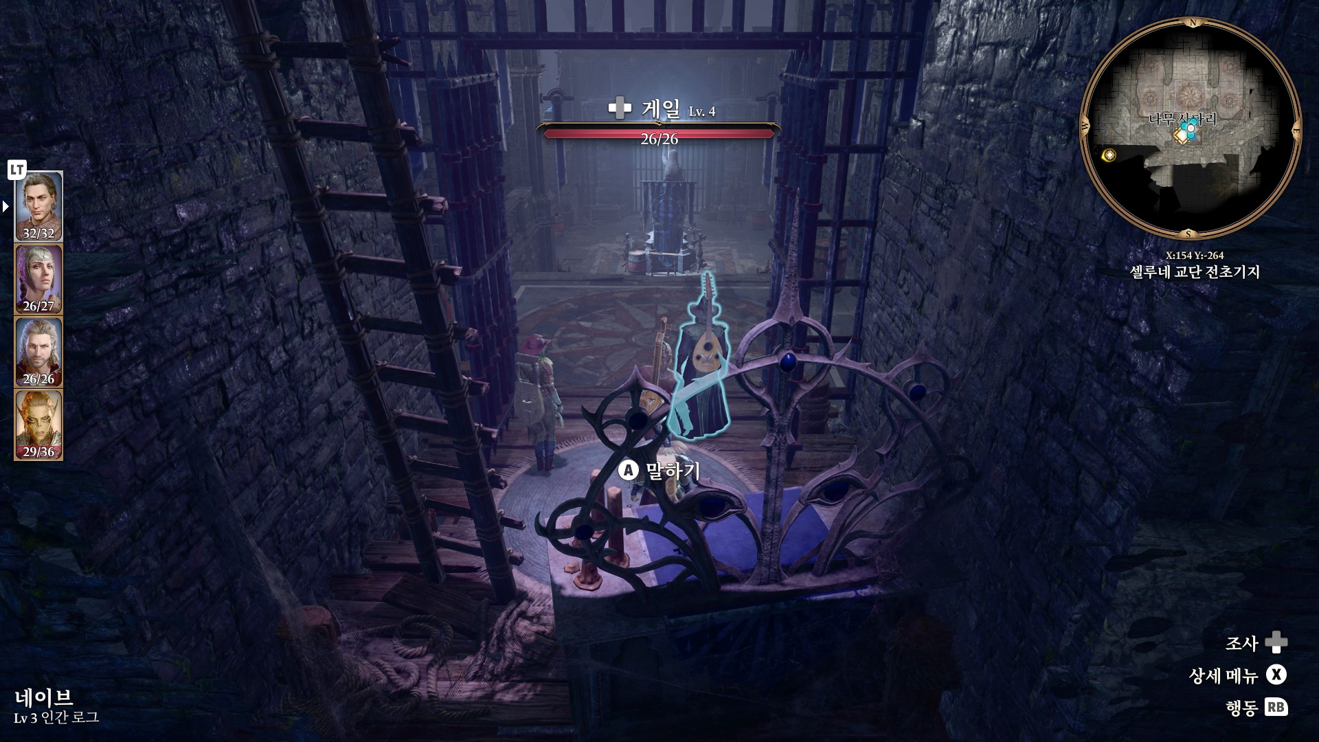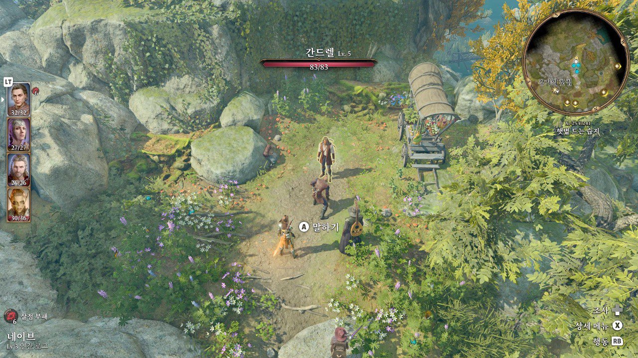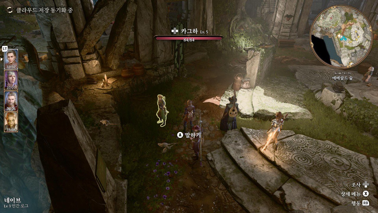1. 게일을 파티에서 분리 단독 행동 (LT 누르고 Y 로 단독으로 분리)