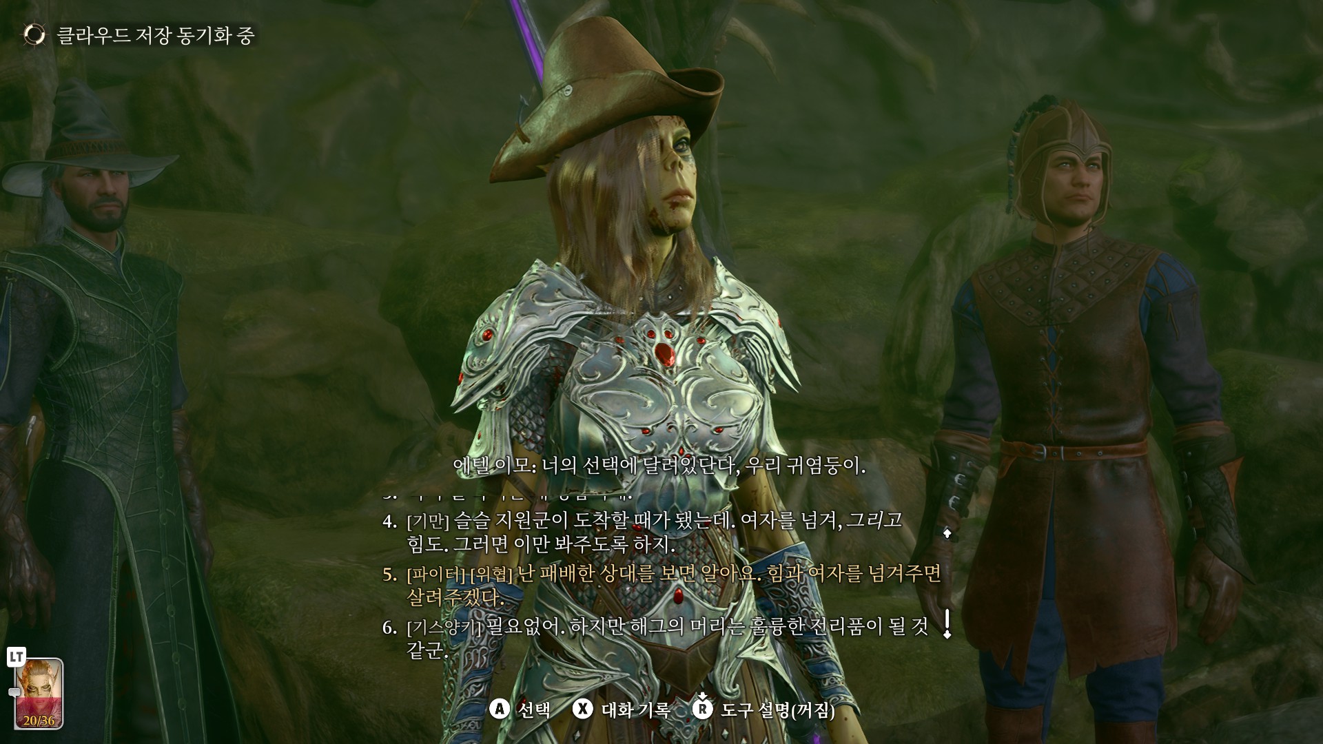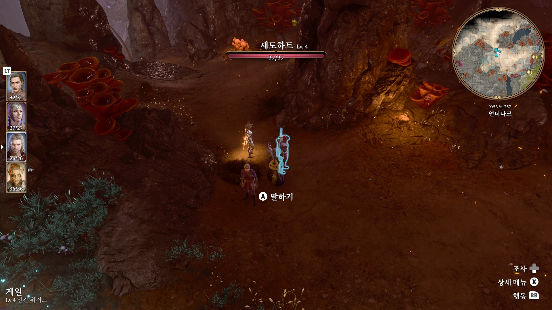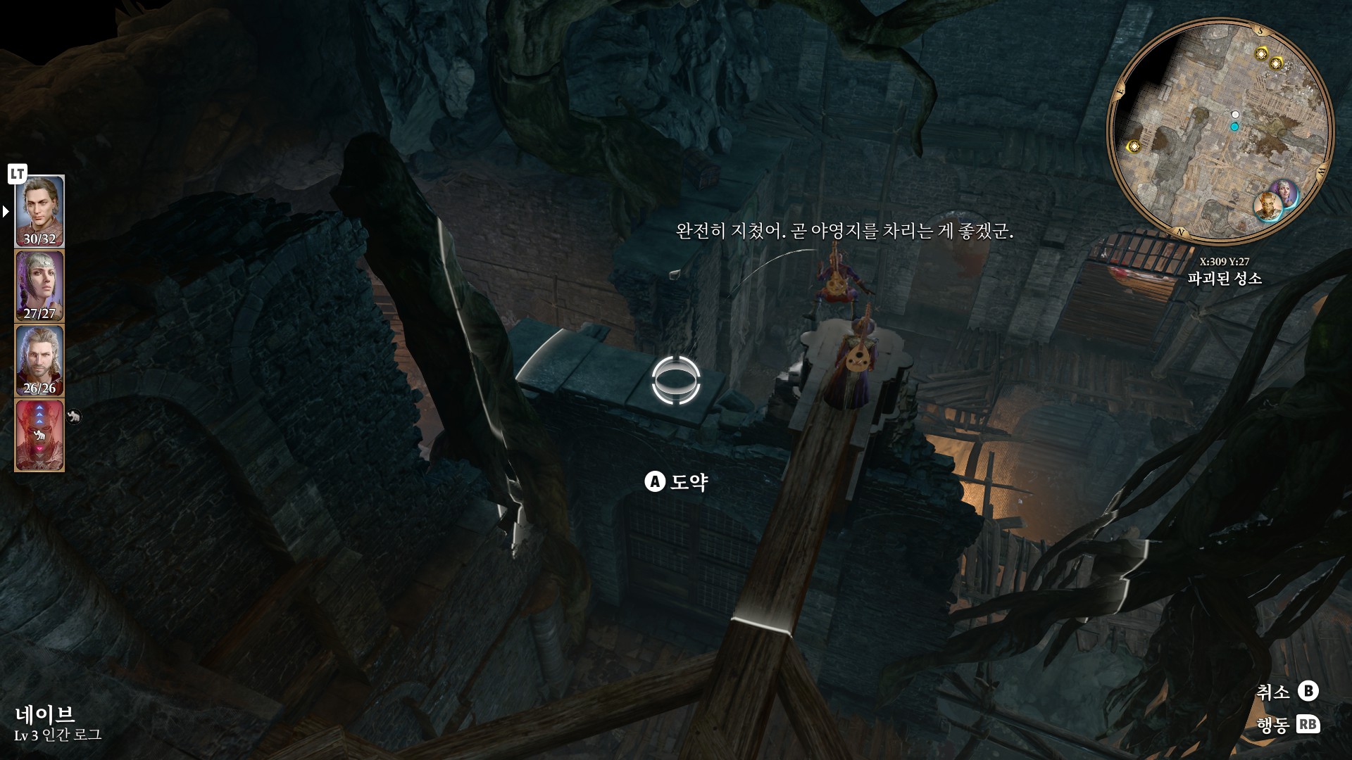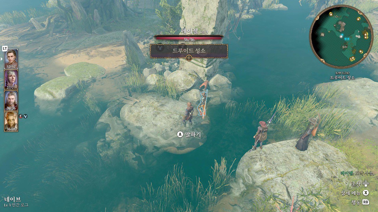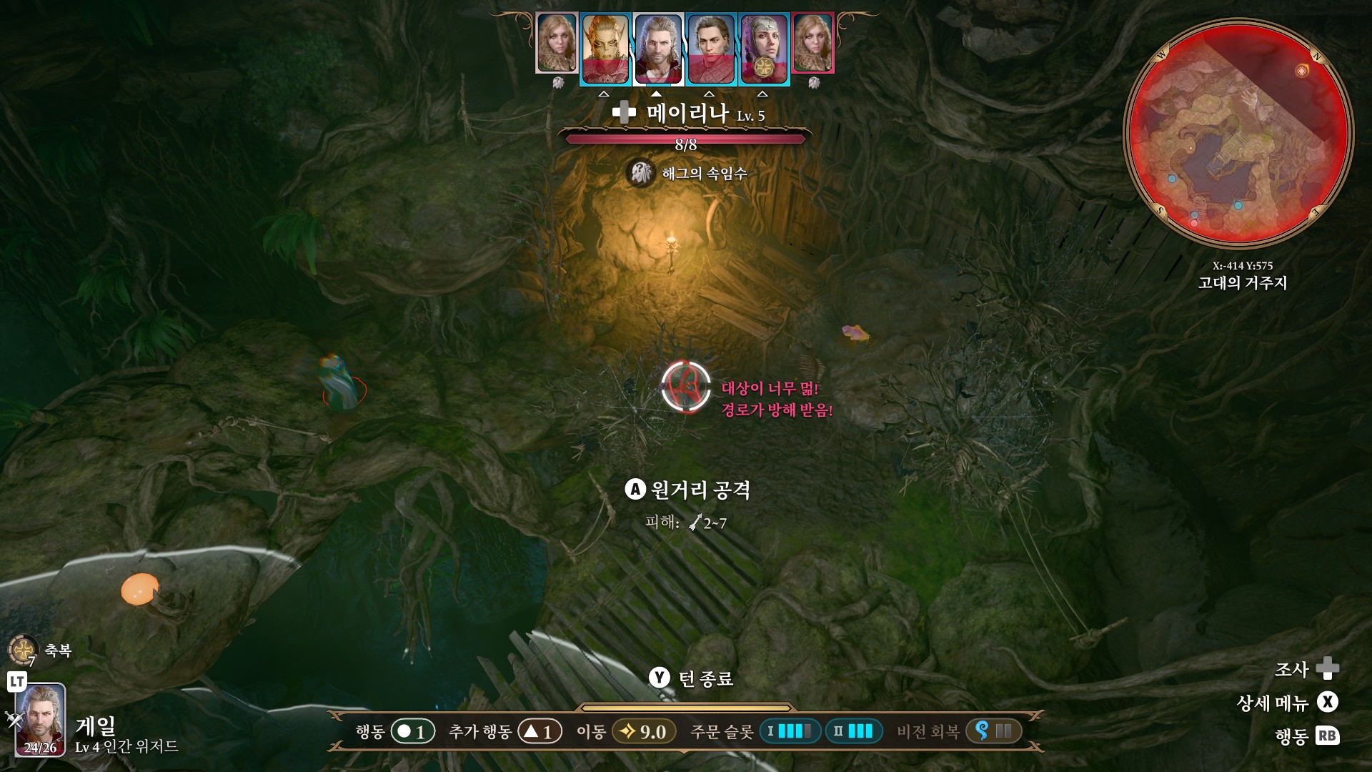 1. 게일을 파티에서 분리 단독 행동 (LT 누르고 Y 로 단독으로 분리)