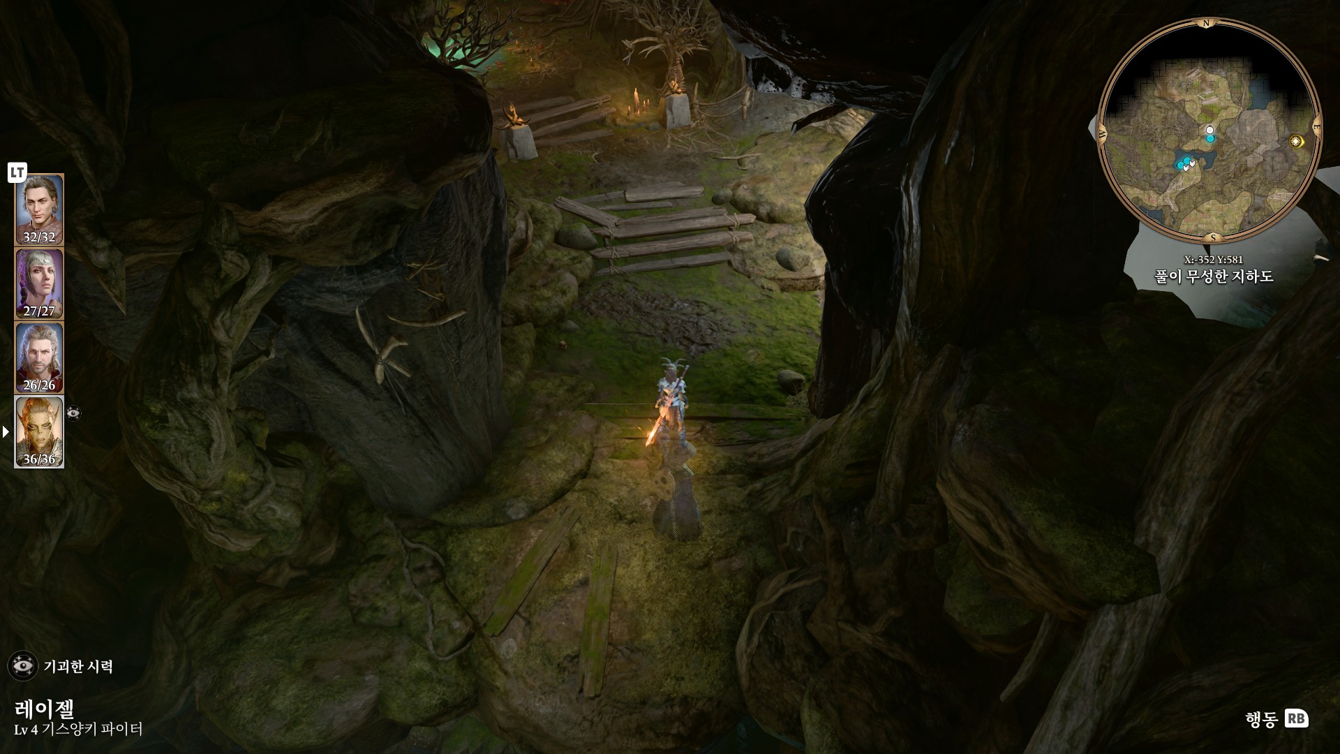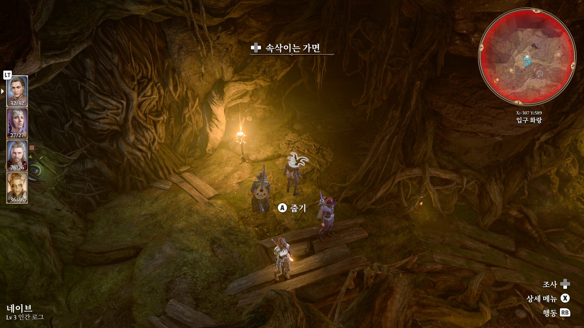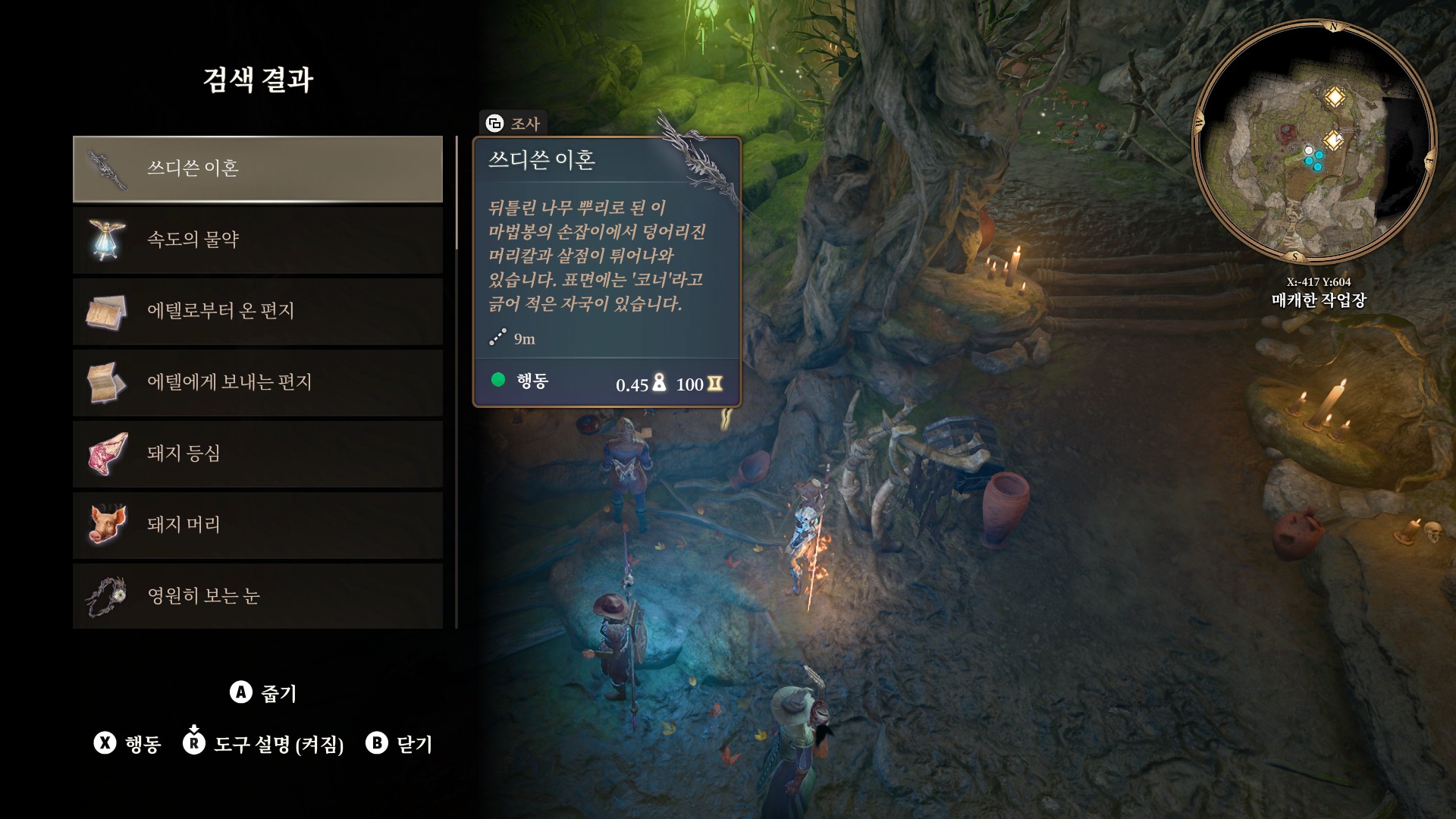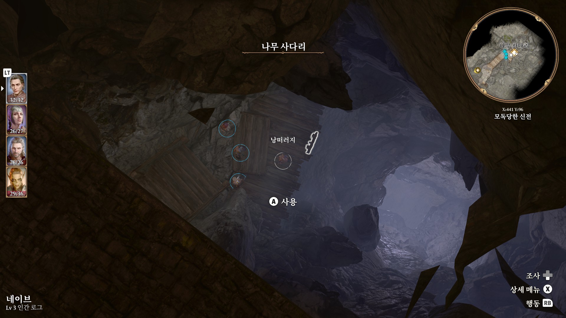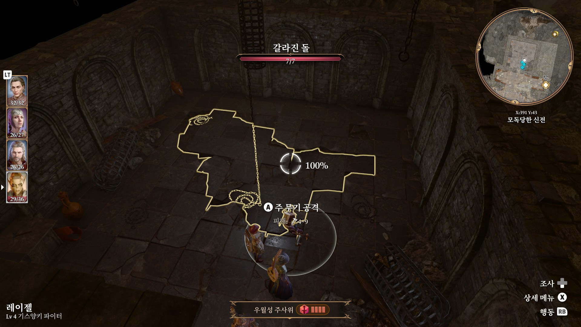 1. 게일을 파티에서 분리 단독 행동 (LT 누르고 Y 로 단독으로 분리)