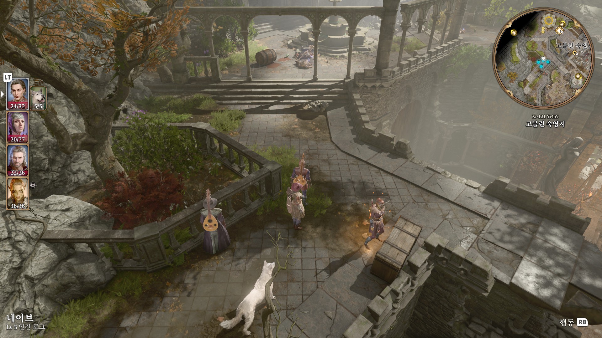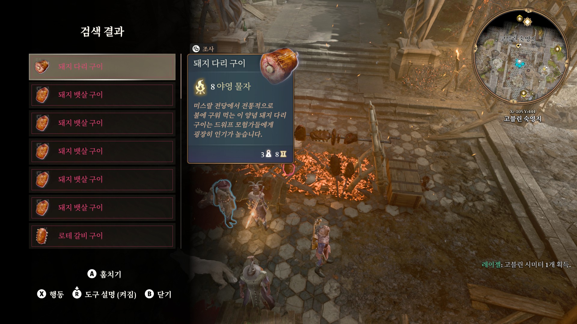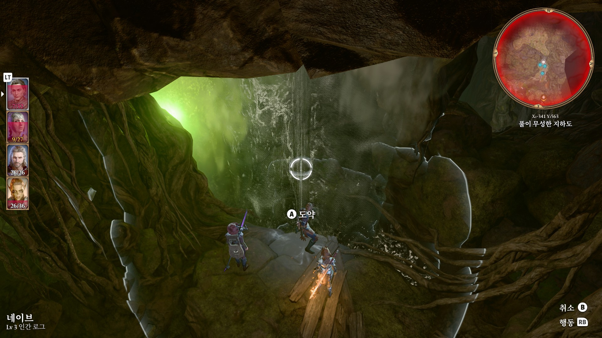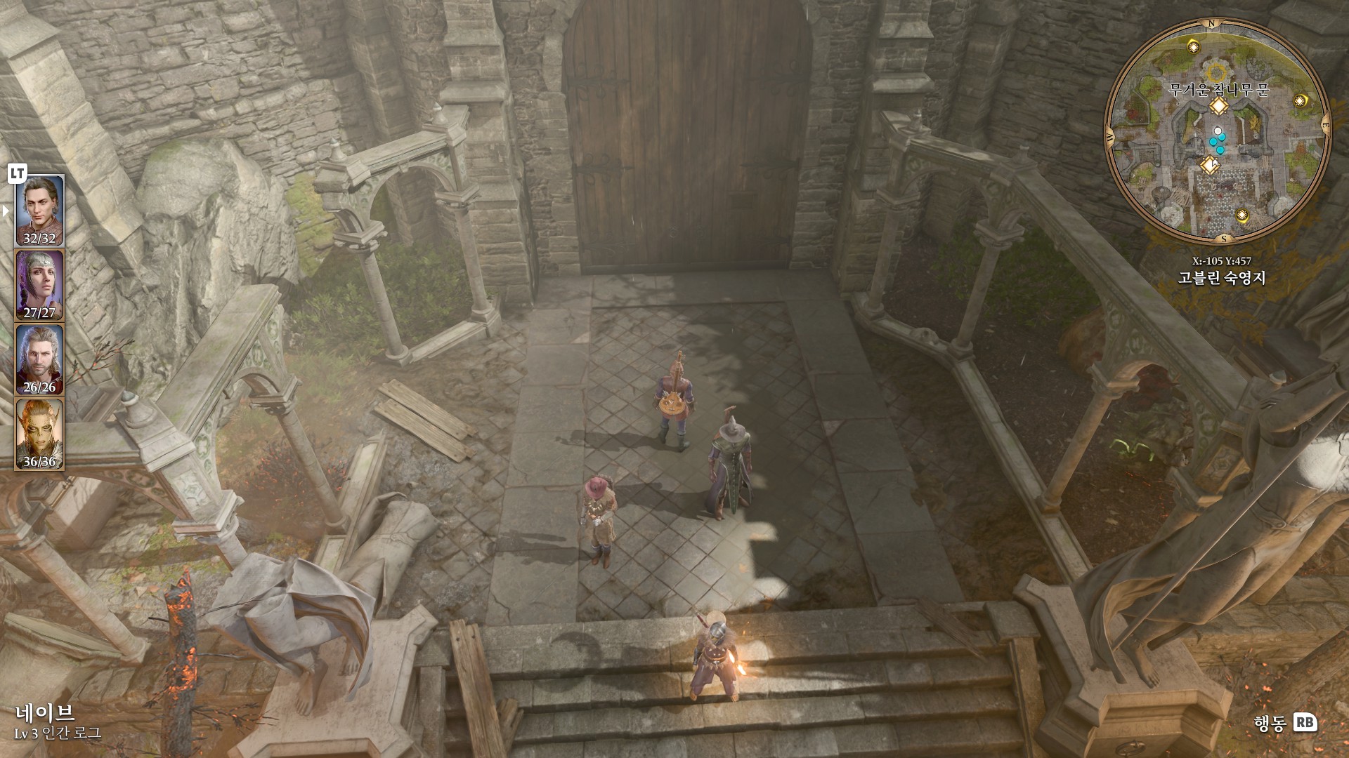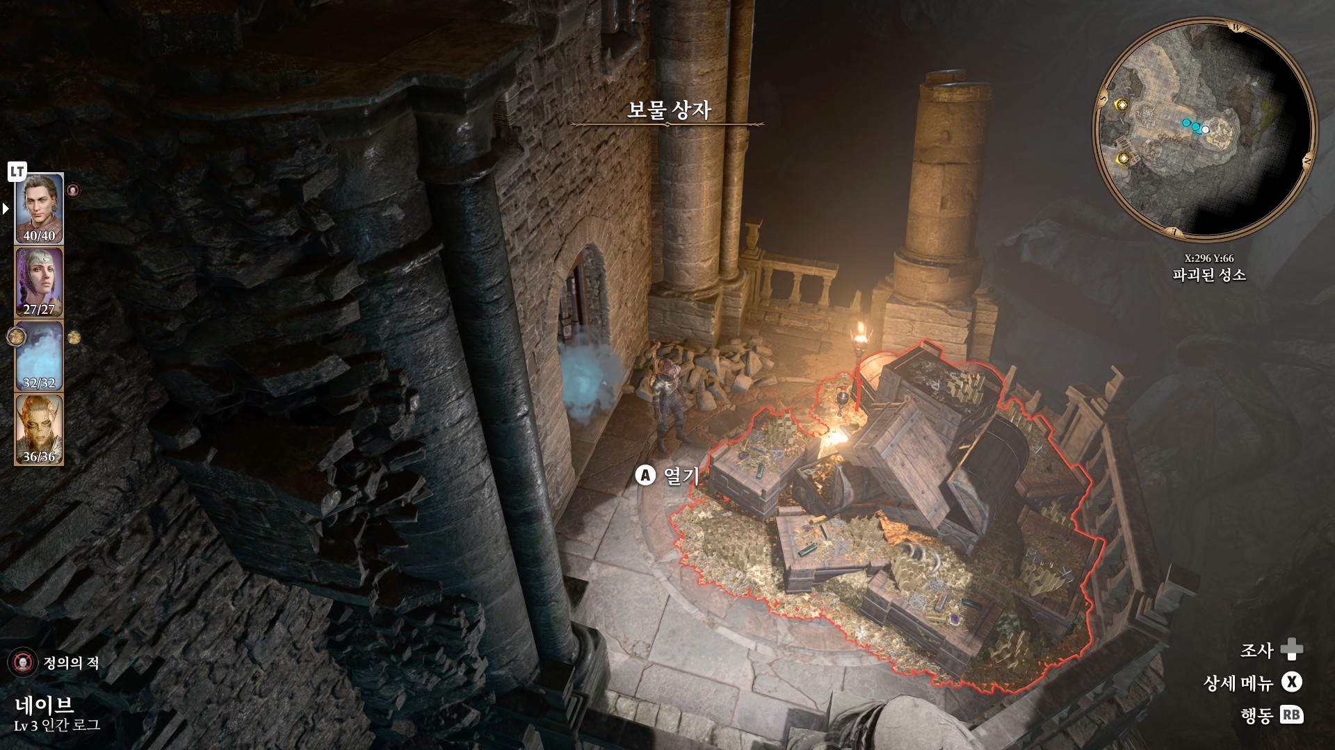1. 게일을 파티에서 분리 단독 행동 (LT 누르고 Y 로 단독으로 분리)