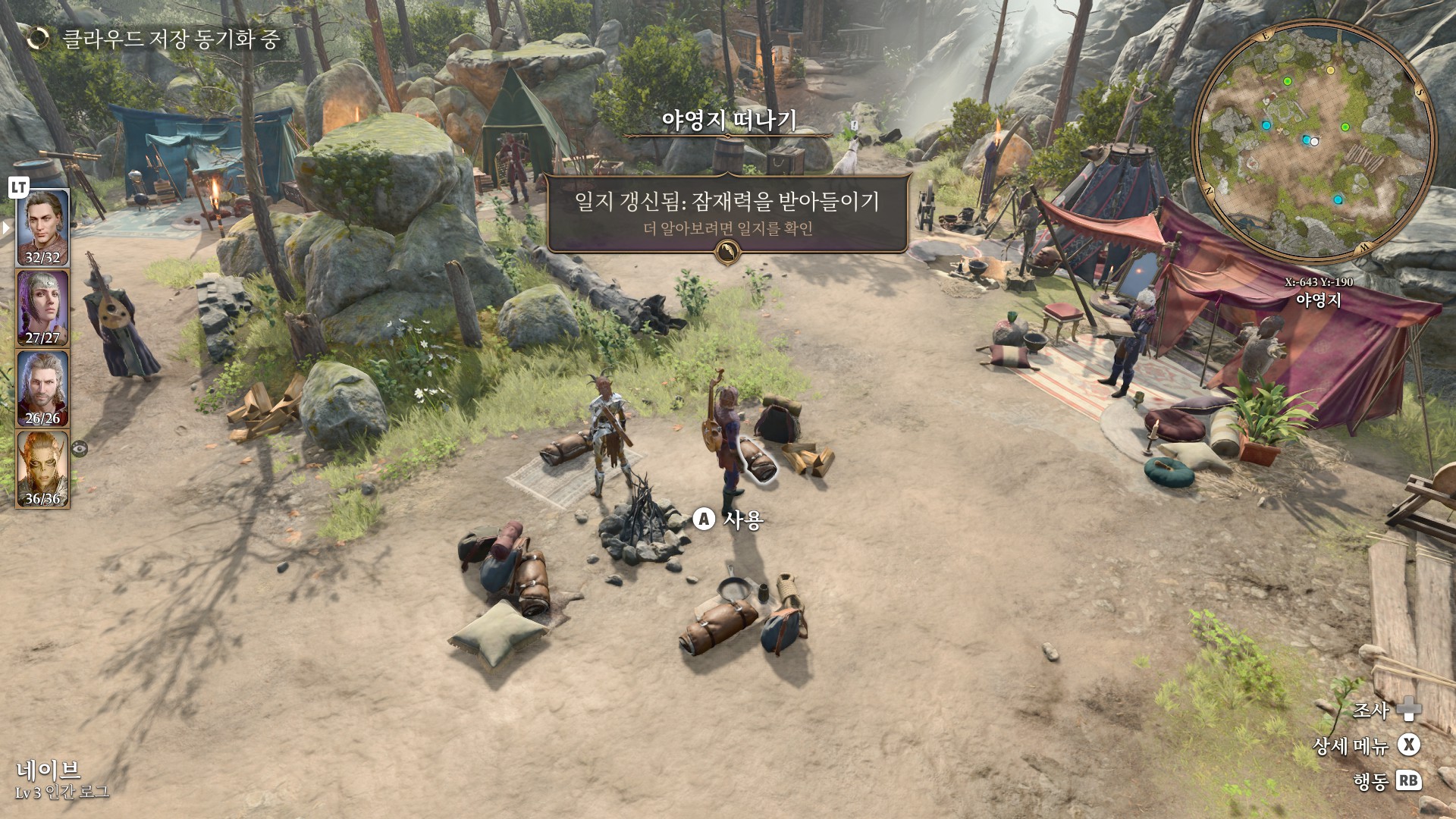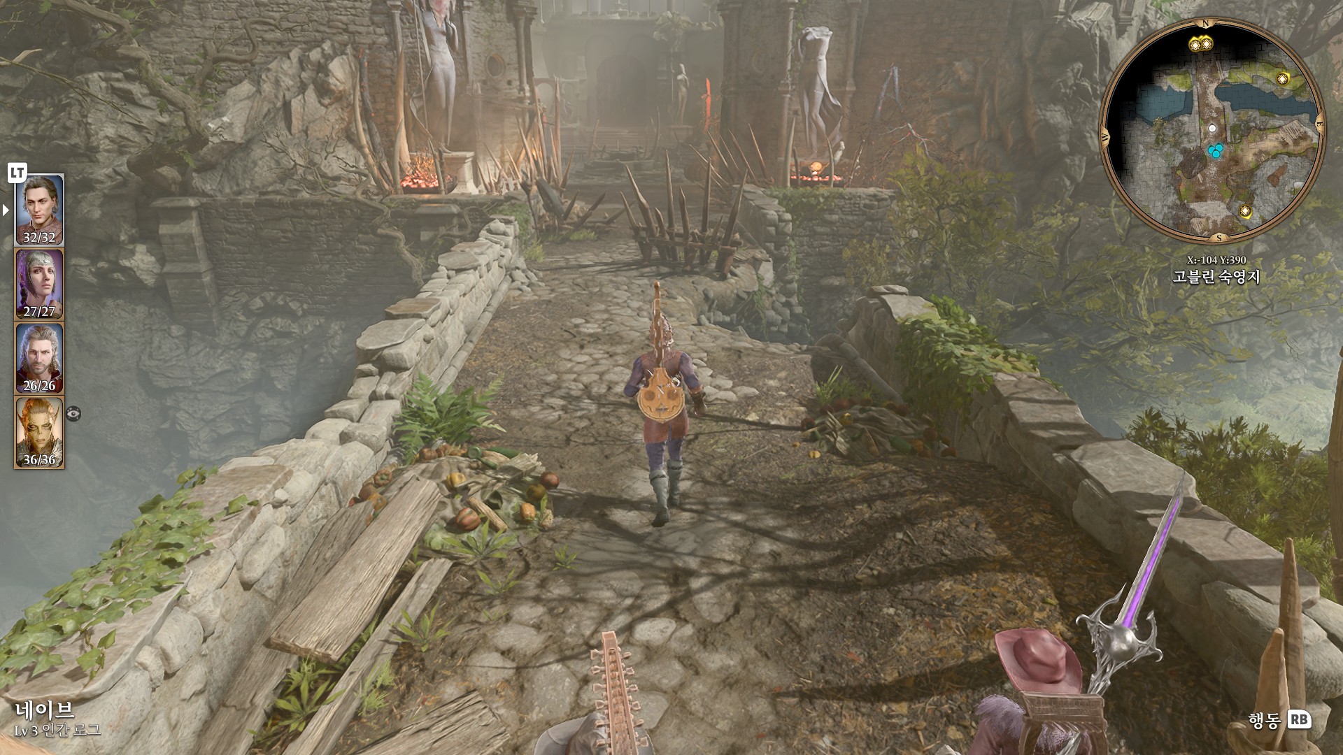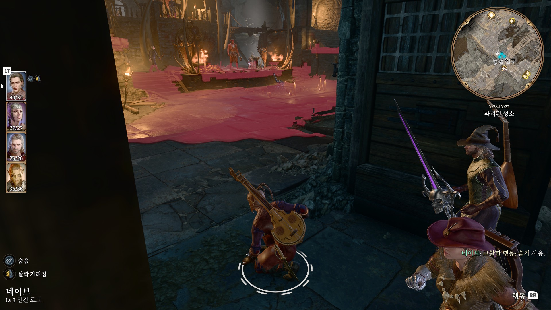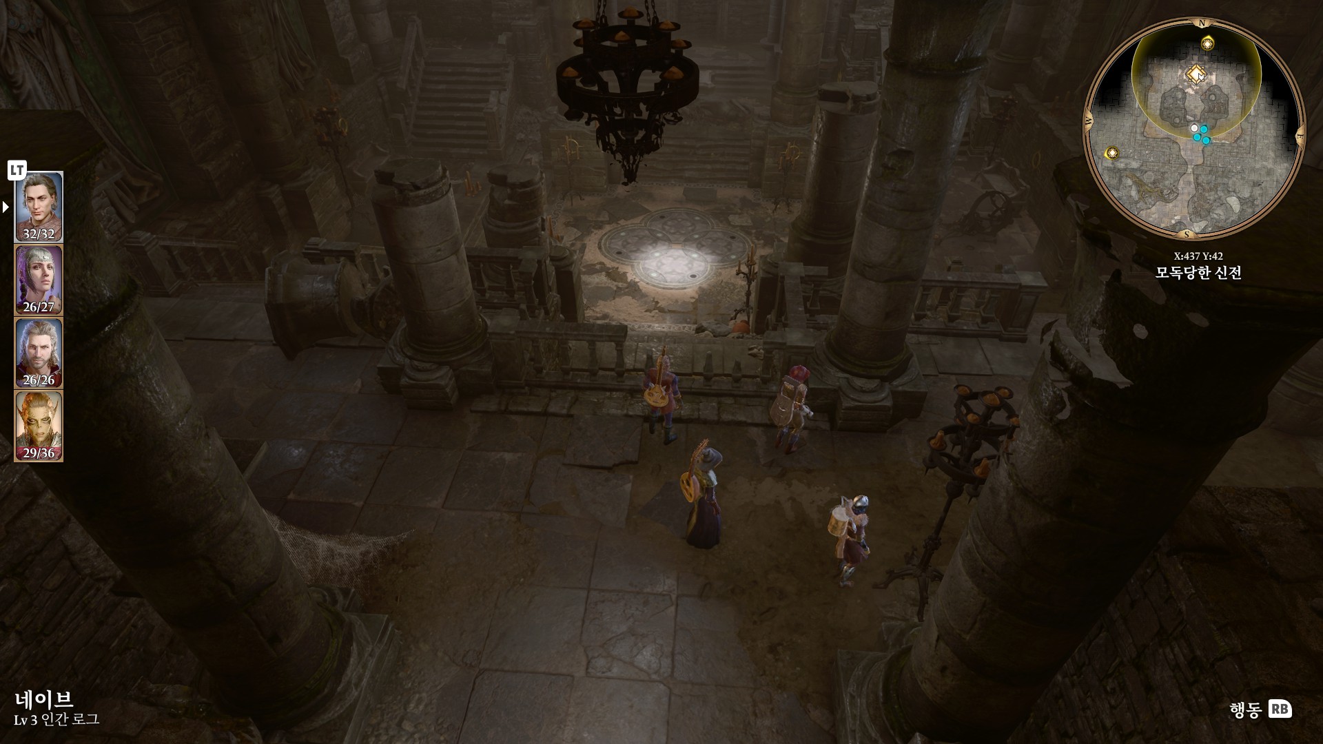 1. 게일을 파티에서 분리 단독 행동 (LT 누르고 Y 로 단독으로 분리)