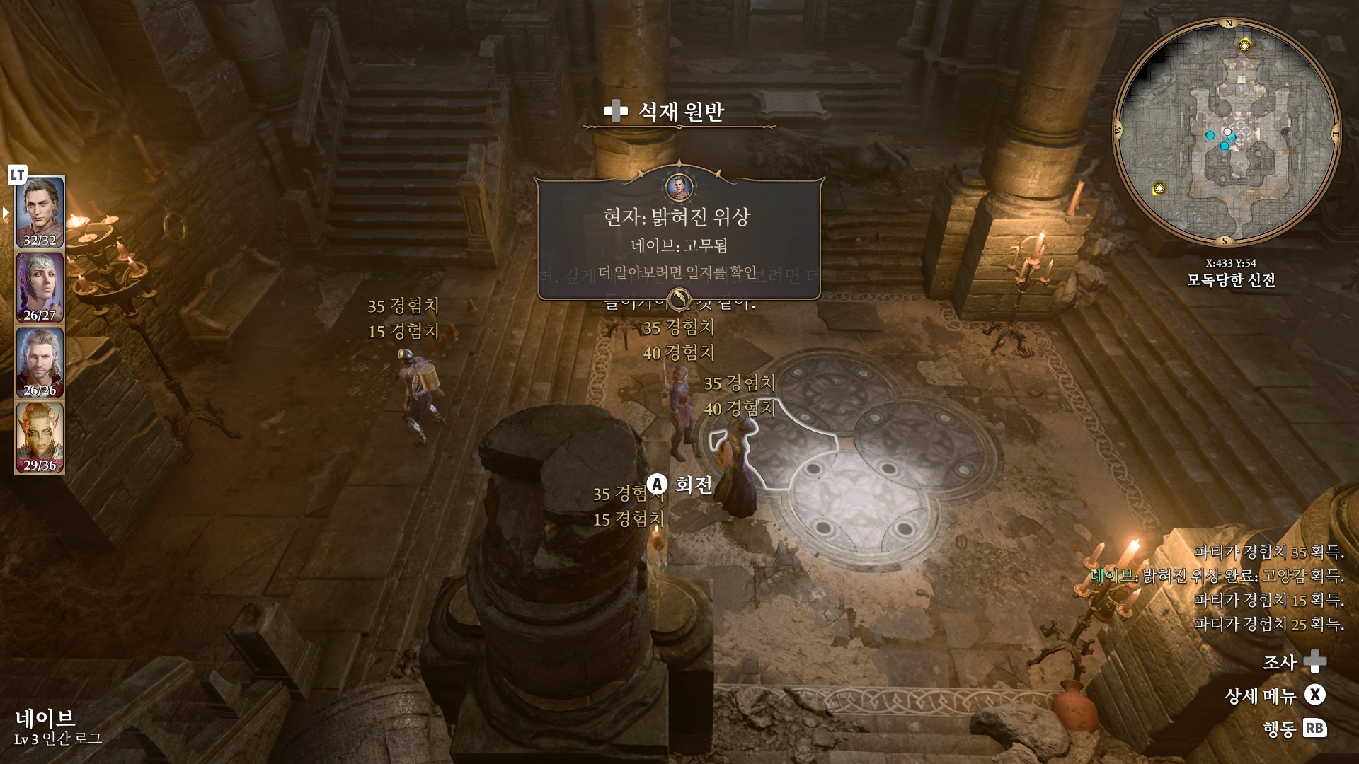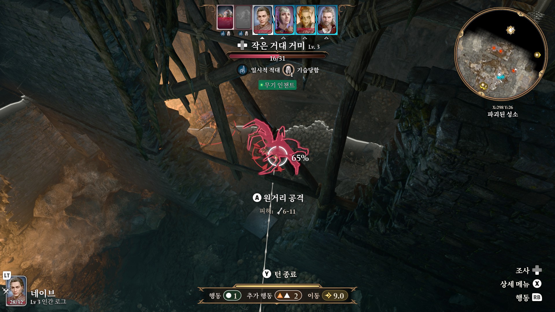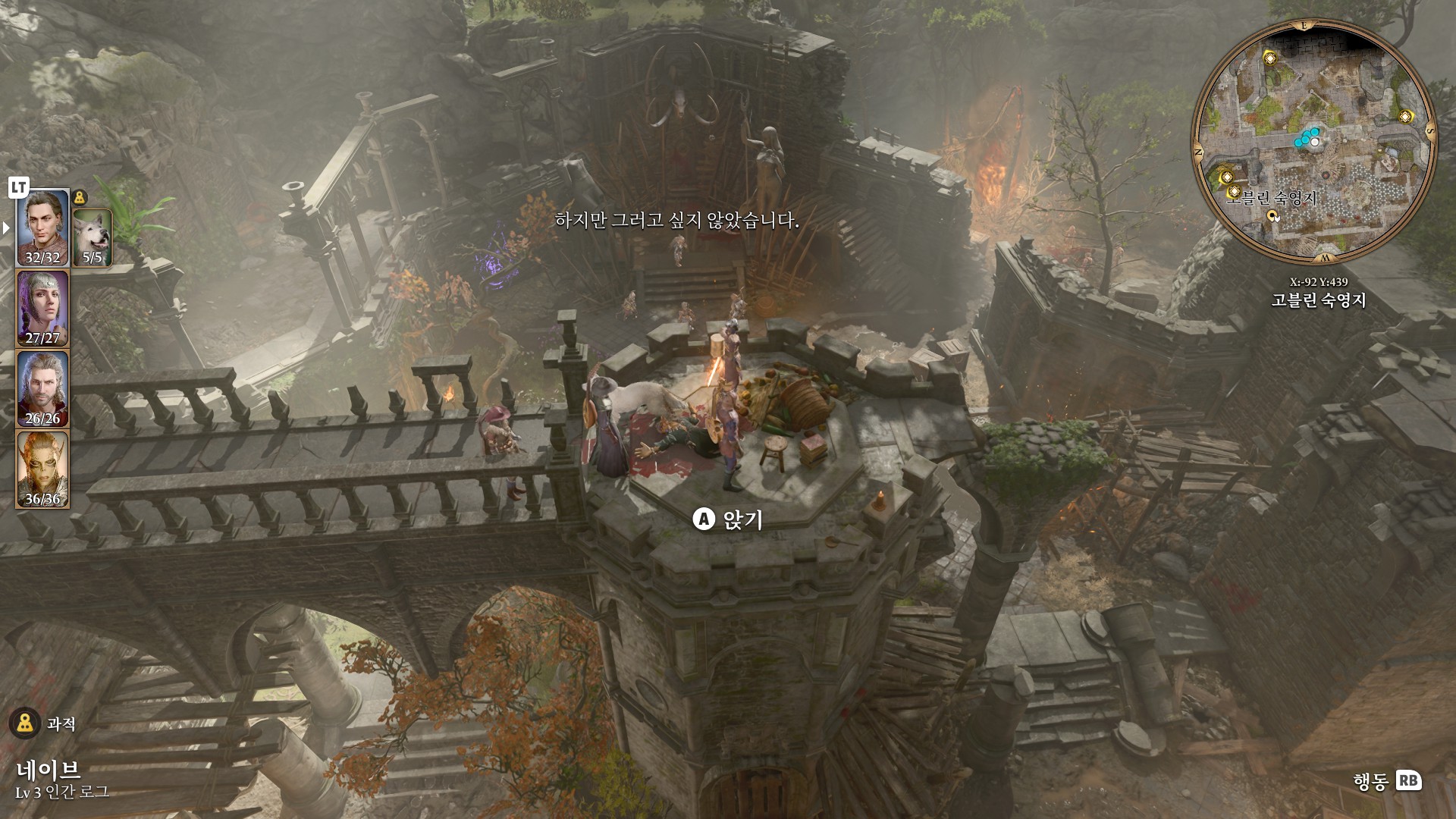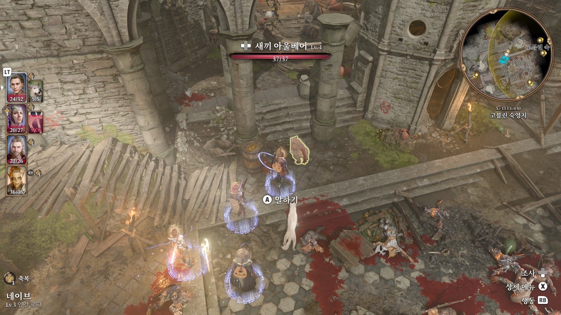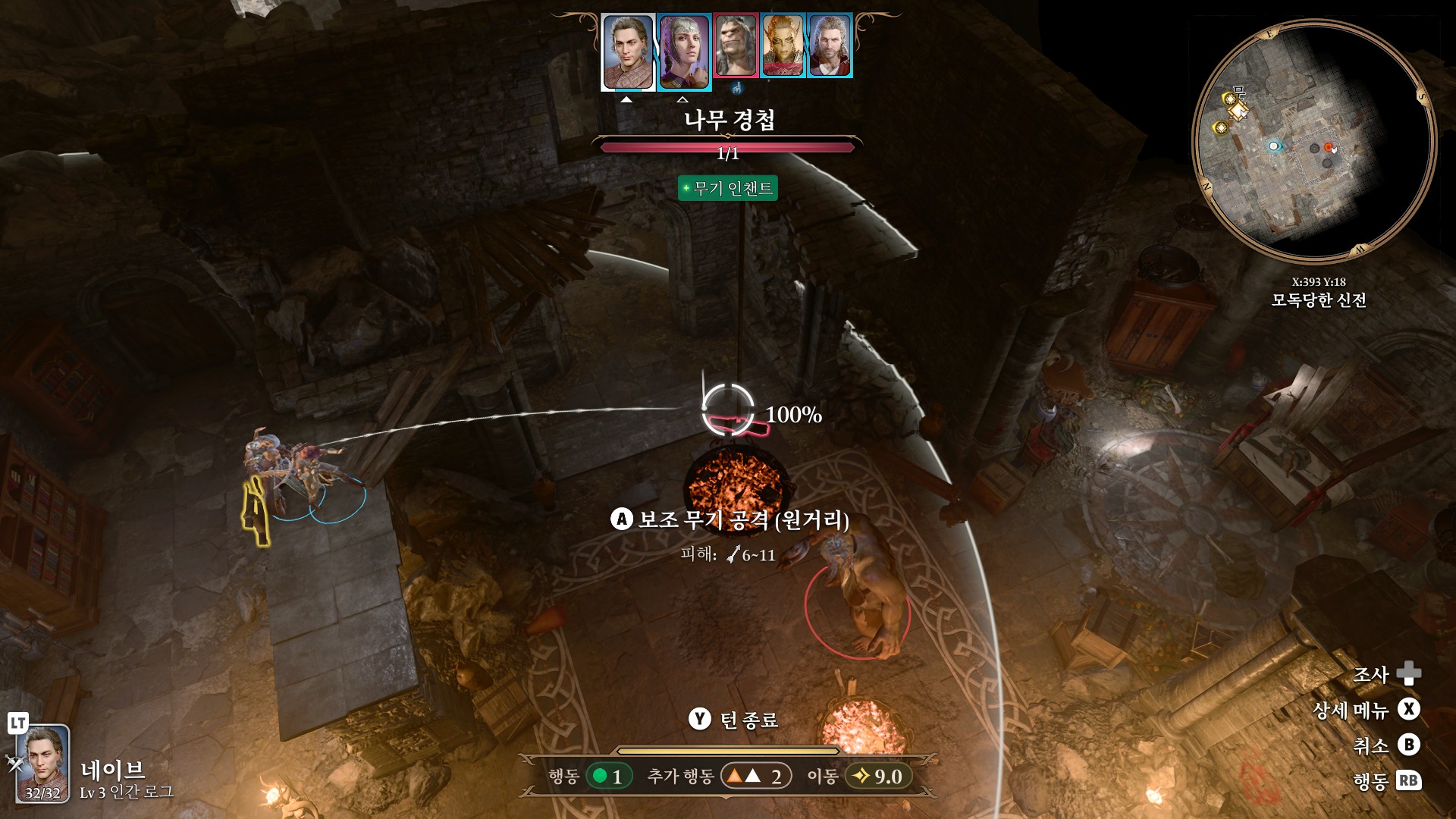 1. 게일을 파티에서 분리 단독 행동 (LT 누르고 Y 로 단독으로 분리)