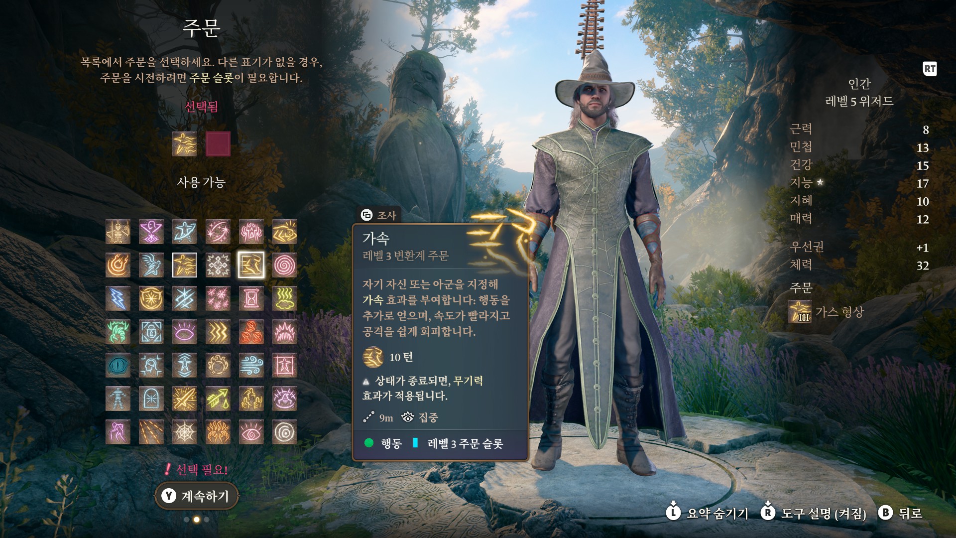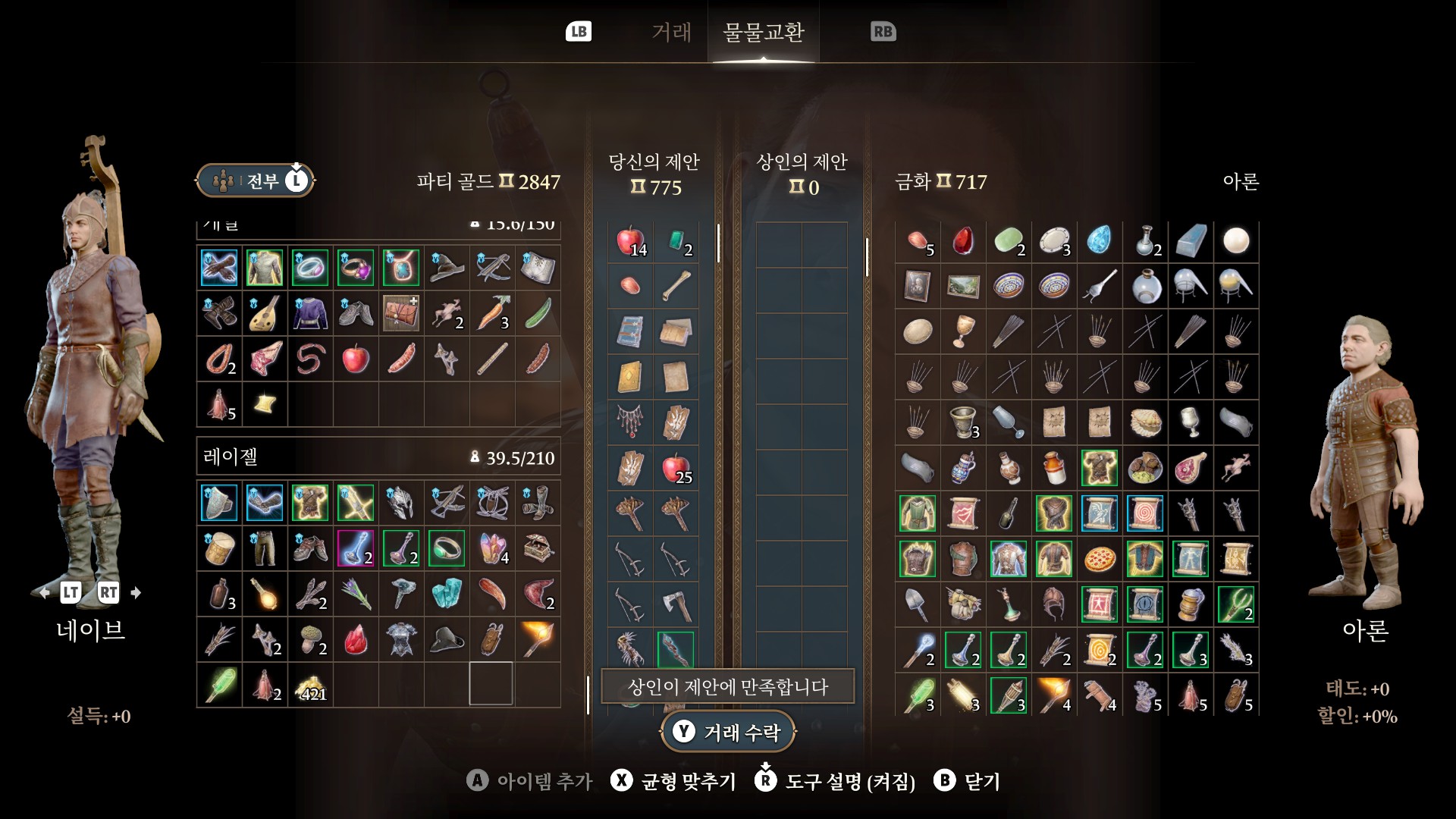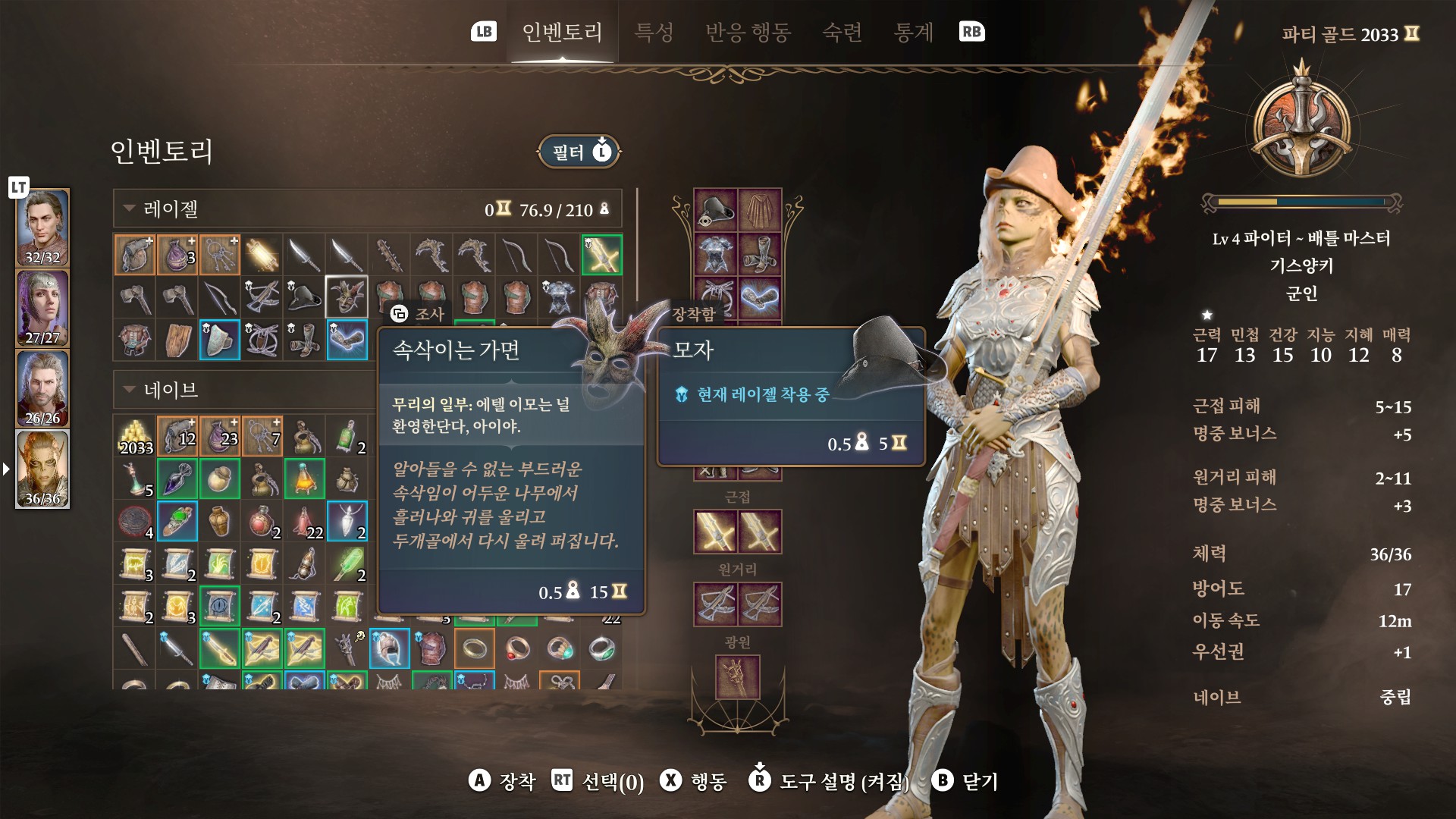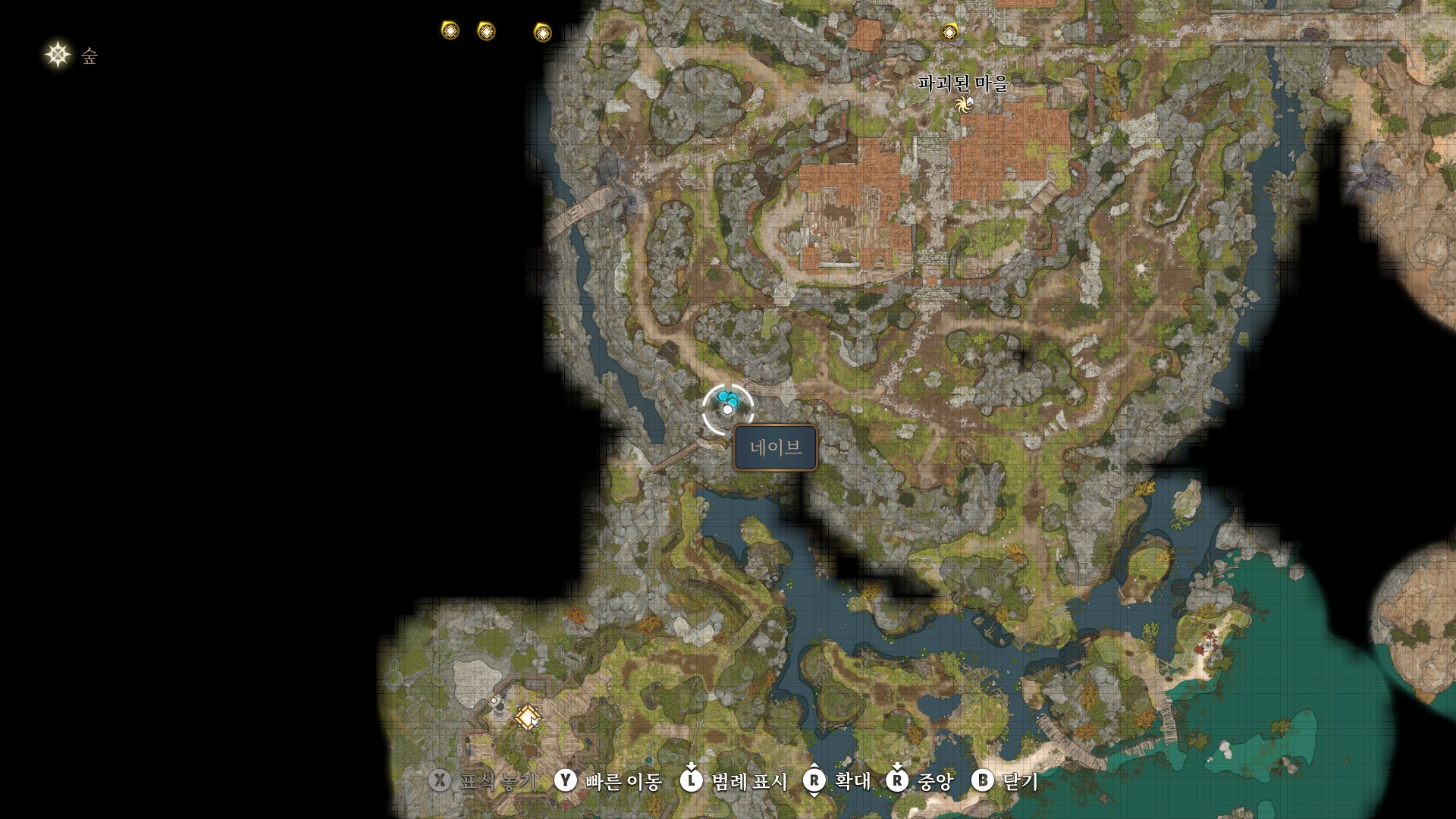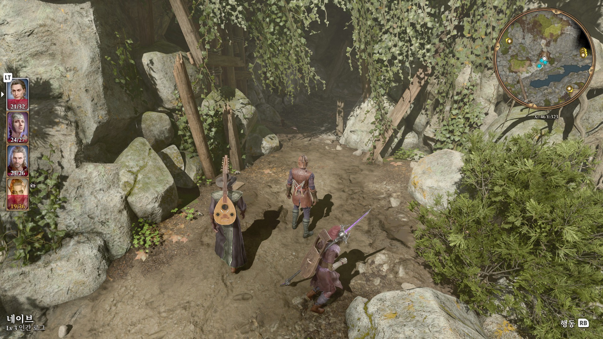 1. 게일을 파티에서 분리 단독 행동 (LT 누르고 Y 로 단독으로 분리)