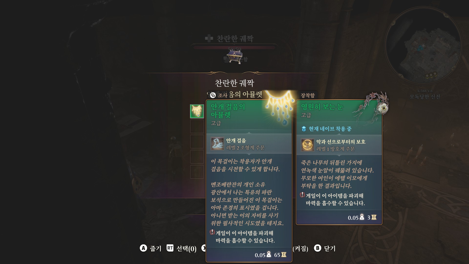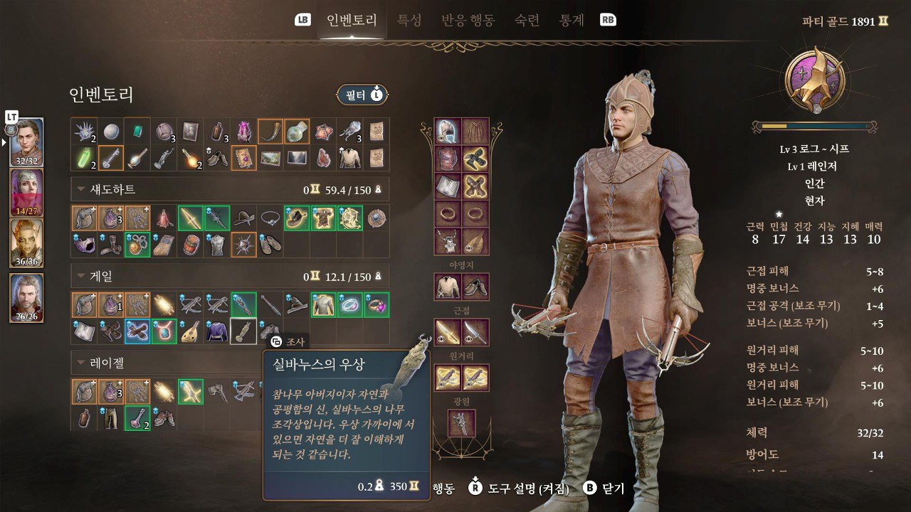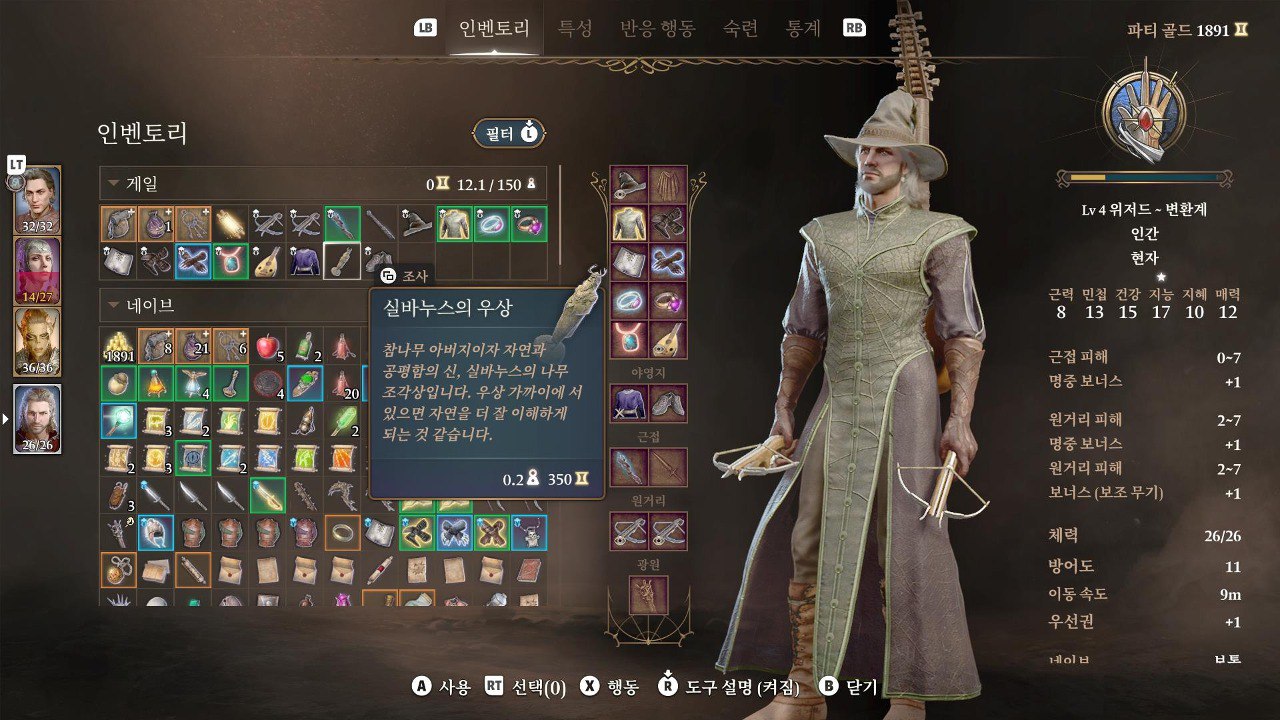 7. 인벤토리를 열고 실바누스의 우상을 주인공한테 옮김