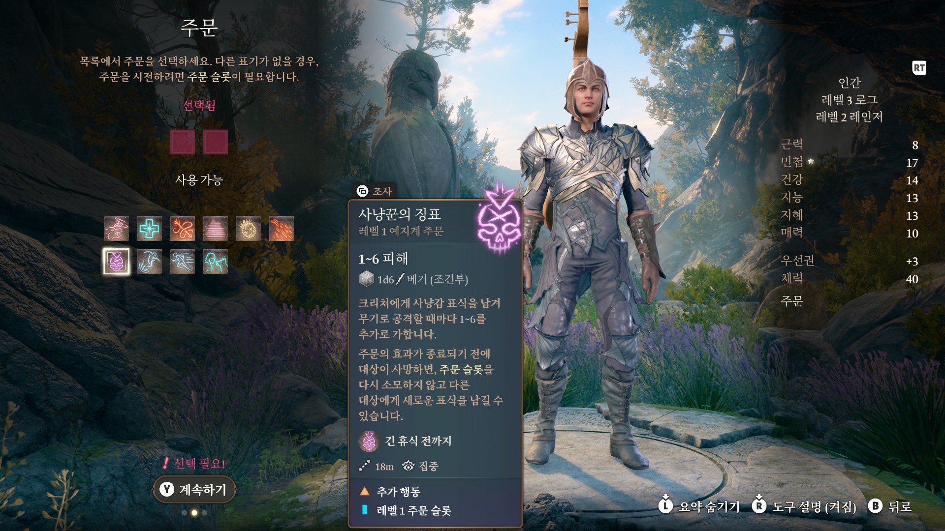 3. 게일로 어둠 마법을 자기 위치에 사용