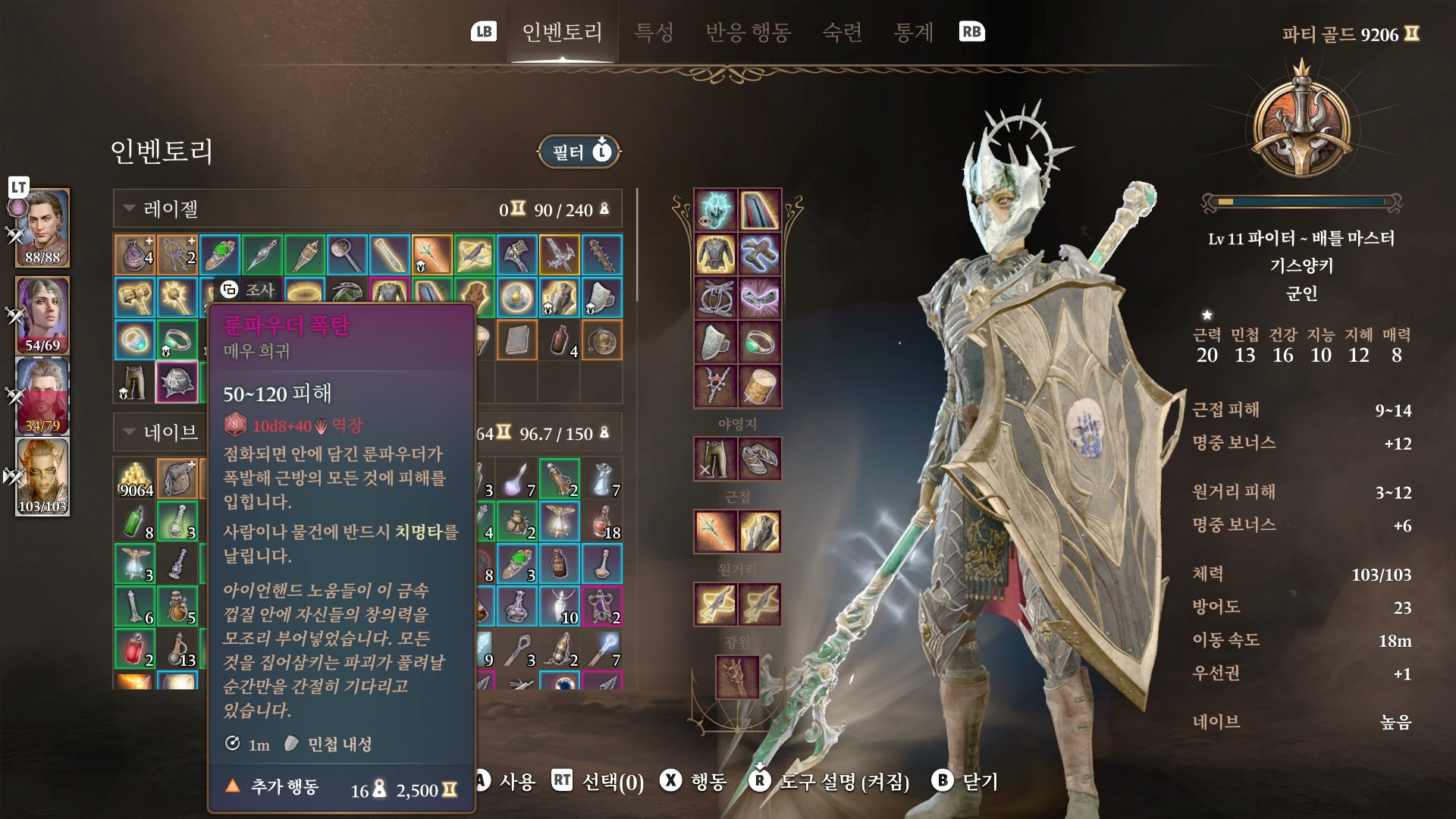 움만 10시간쯤 한 듯... 발더스 게이트 전투