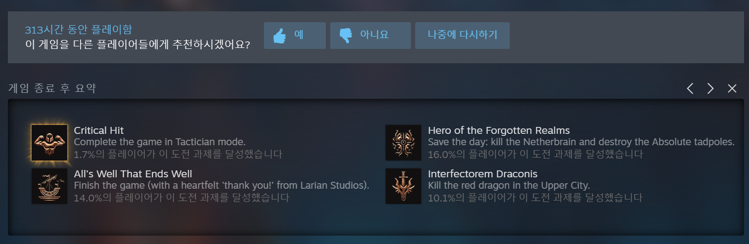 발더스 게이트 3 - 명예 난이도 (0) | 2023.12.05 |