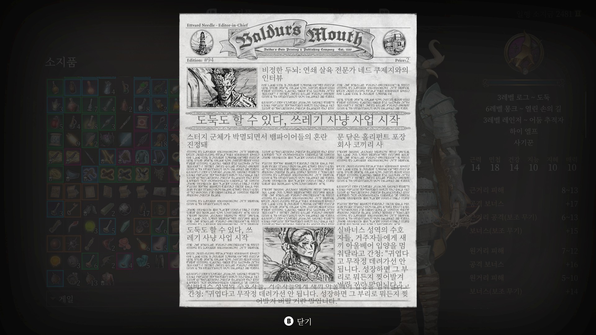 | 발더스 게이트 3 - 윌 워락 팔라딘 빌드 (2) | 2024.01.05 |
