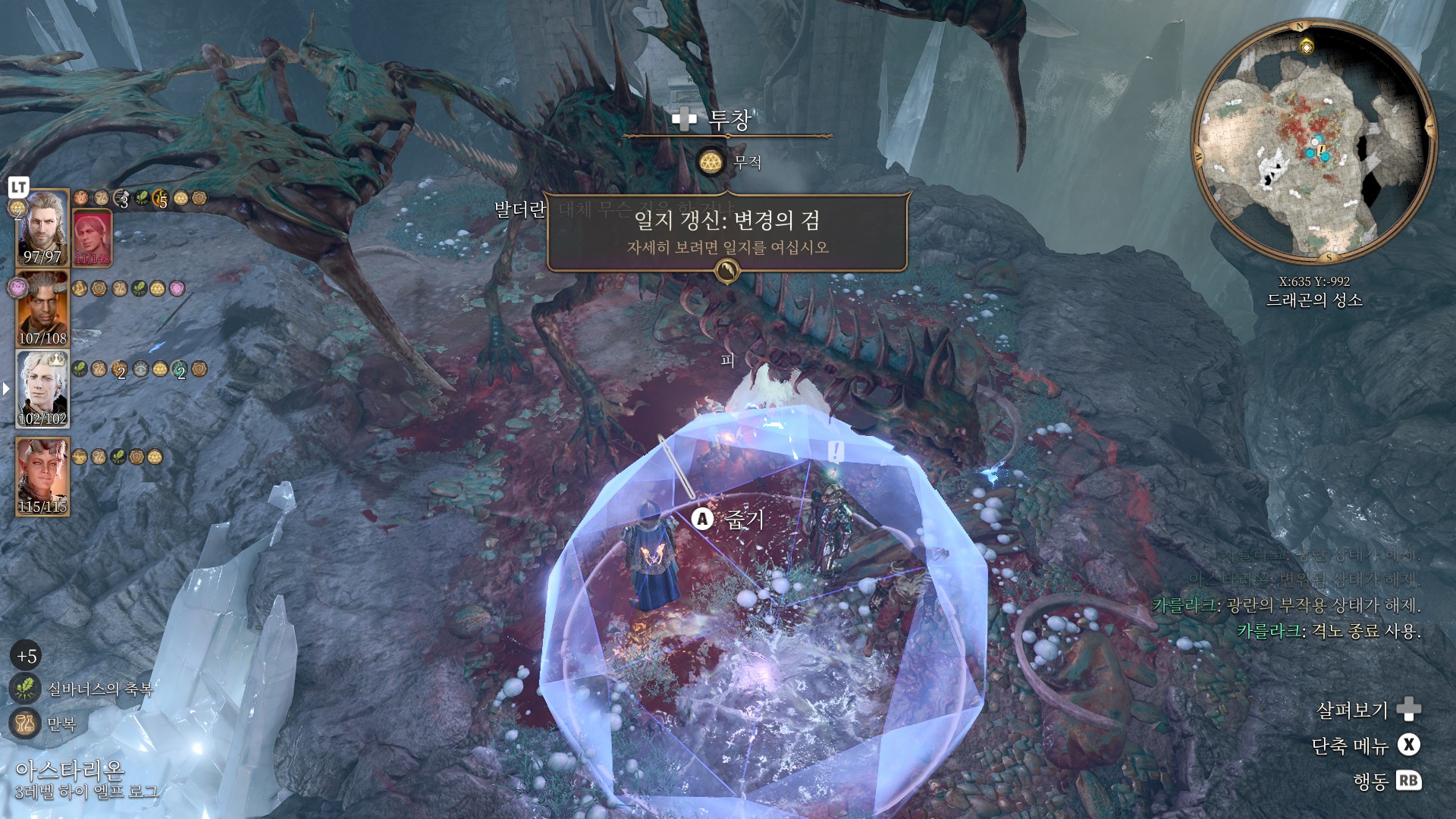 걸립니다. 물론 무적의 구체는 해제 (사신의 포옹을