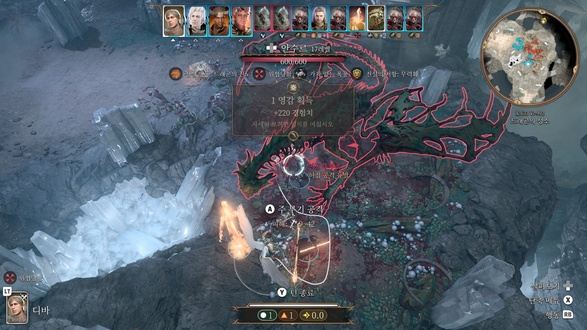 아 오르는데 이 때는 공격을 해봐야 별로 피해를 줄
