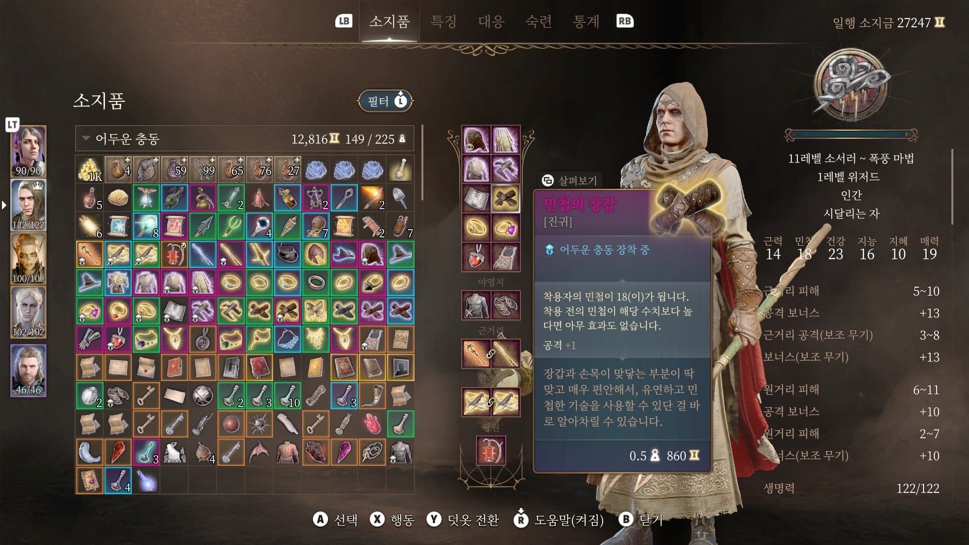 민첩의 장갑. 민첩을 18로 올려줘서 좋습니다 느린 마법