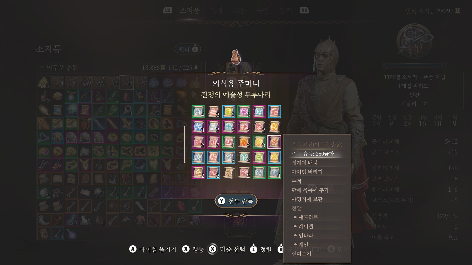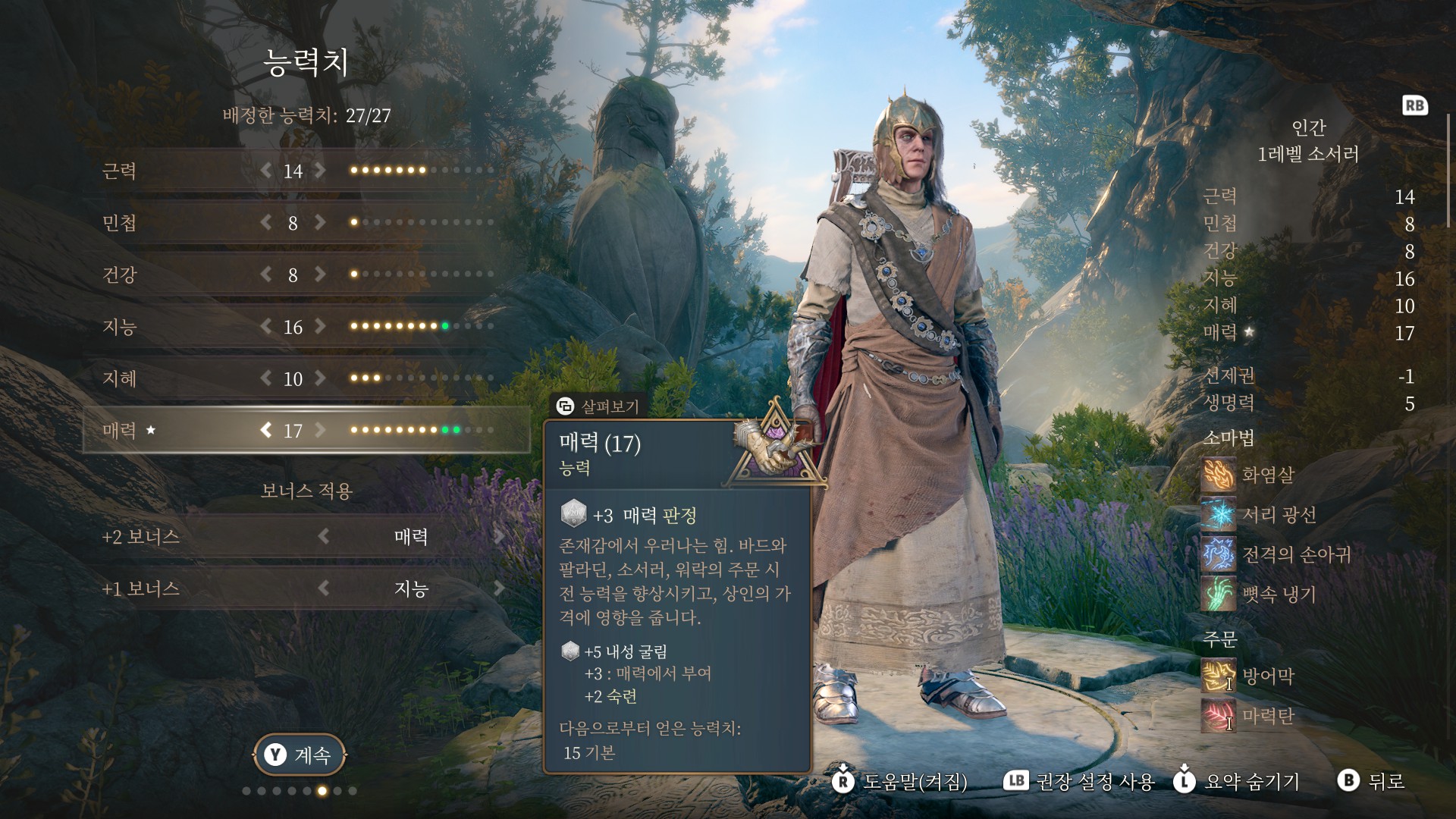 스탯으로 매력을 올리면 전투 마법사 같은걸 익힐