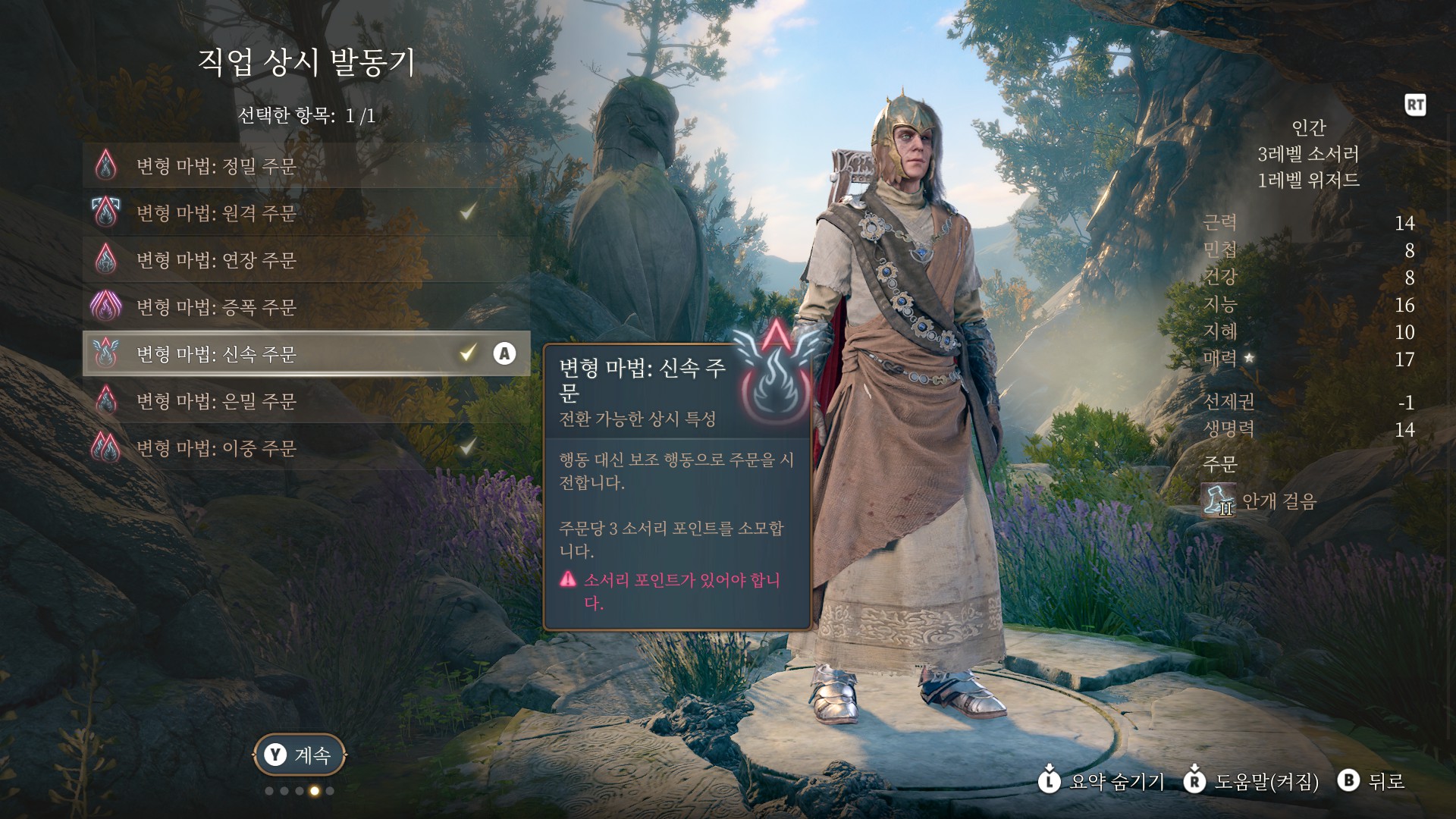 신속 주문 입니다 보조 행동으로 마법을 한번 더 쓰게
