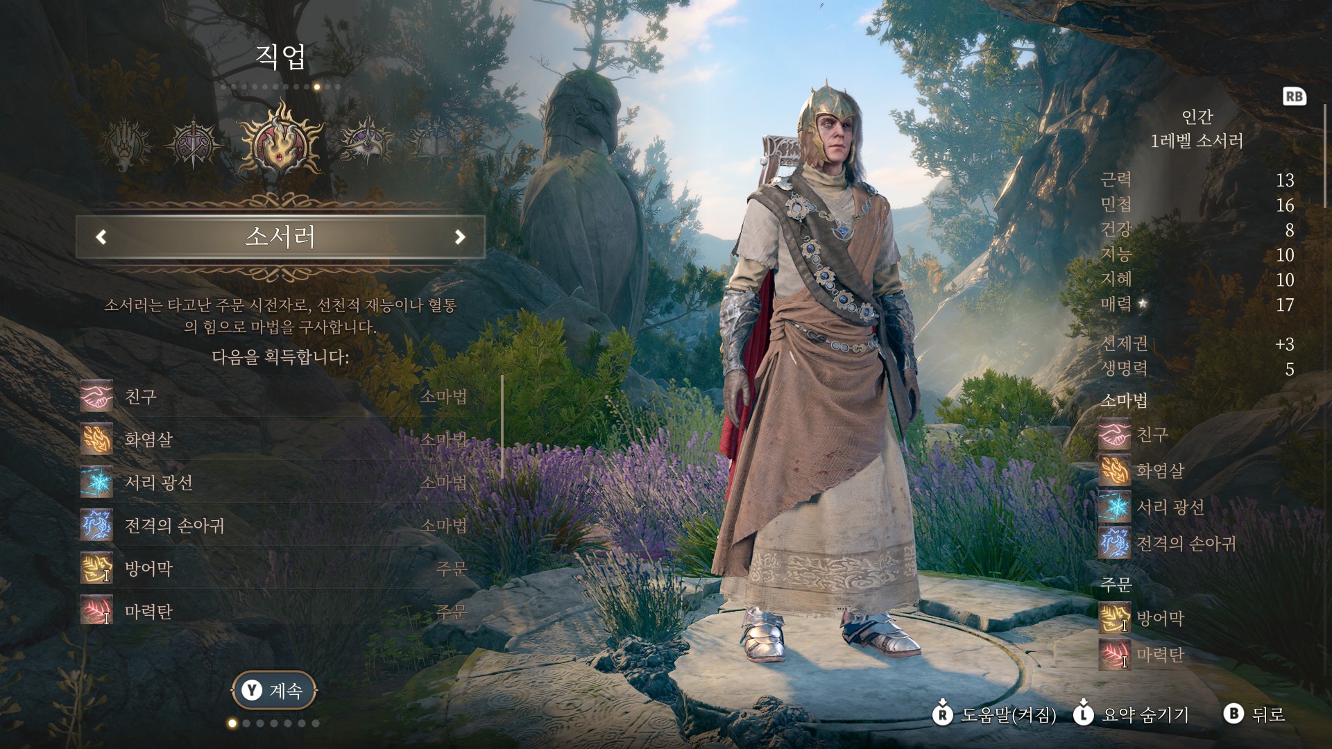 초기 직업 설정이 소서러로 되어있습니다