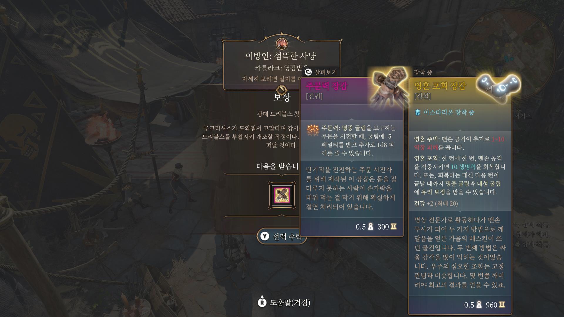 주문력 장갑.. 주문 명중에 자신이 있다면 약간의 데